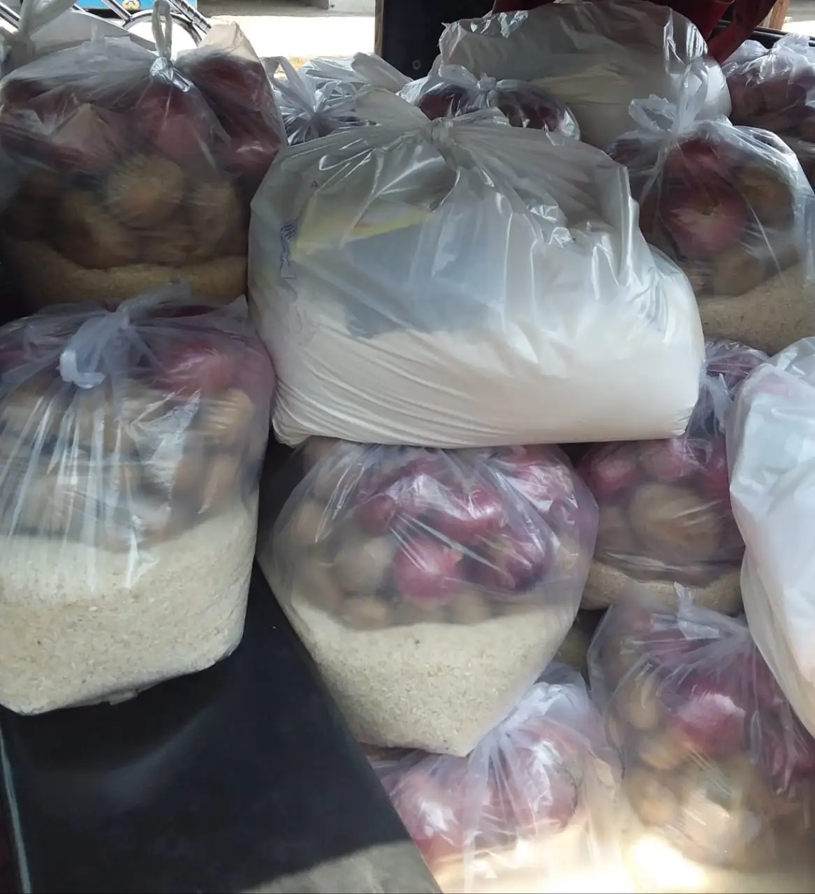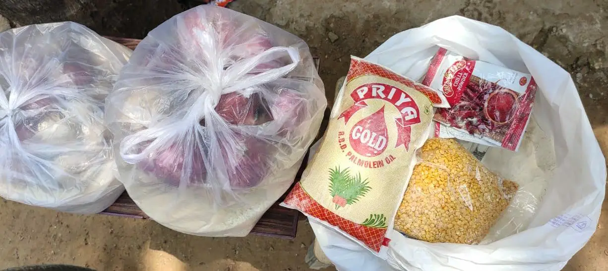 ration kits distributedNote :- per kit contains; Wheat flour-5kg, Rice-3Kg, Sugar-1kg, Oil-1L, Toor Dal- 1kg, Salt-1kg, Tea-200gm, Tumeric-100gm, Chilly Powder-100gm, Cumin-100gm, Onion-1Kg, Potato-2kg, Tomato-500gm, Soap-1